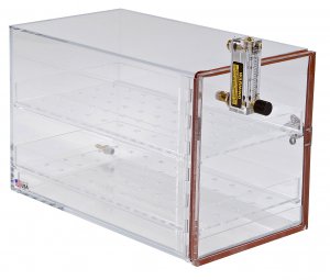 Nitrogen Purge Cabinet are simple, easy to use at temperatures up to 120°F for use in freezers, refrigerators, or at room temperature. Made in the USA, these desiccator cabinets have air-tight doors that need no lubrication. Sliding perforated shelves for easy access; transparent acrylic walls, for see-thru storage. Nitrogen Purge Cabinets also available with Flow Meters. Direct reading scale flow meters with control valve let you not only measure flow through the meter, but also make flow adjustments in the line. Acrylic, ethylene polypropylene and Type 316 stainless steel wetted parts. Flow range: 2-20 scfh with accuracy of /-6%. Flow meter dimensions: 2” scale height x 4 1/8” overall height with mounting centers of 3”. Additional sizes available upon request.