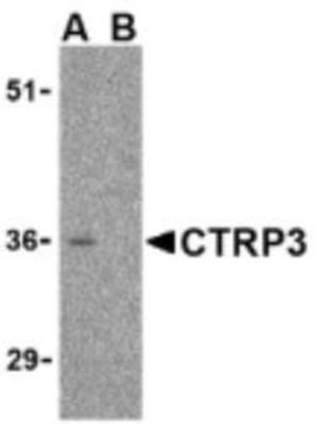 A blocking peptide containing 16 amino acids near the center of human CTRP3 Source: Synthetic (Accession #: NP_852100) The C1qTNF3/CORS26/CTRP3 Blocking Peptide has been validated for the following applications: Antibody Competition.