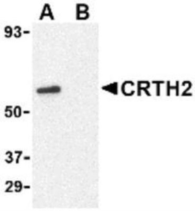 A blocking peptide containing 18 amino acid peptide from near the amino terminus of human CRTH2. Source: Synthetic (Accession #: NP_004769) The CRTH-2/GPR44 Blocking Peptide has been validated for the following applications: Antibody Competition.