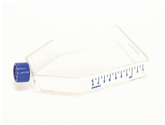 Enhance cell attachment, growth and differentiation with Thermo Scientific™ Nunc™ Cell Culture Treated EasYFlasks™. These polystyrene flasks receive the proprietary Nunclon™ Delta surface treatment to maximize adhesion for a broad range of cell types. The ergonomic design with angled neck and wide opening allows easy access to the growth surface by pipettes or cell scrapers.Looking for EasYFlasks for suspension cell cultures? Find Non-treated EasYFlasks here.Features:Ergonomic design with a 1/3 turn to open and close the capLow profile to maximize incubator spaceVolume graduations printed and molded on both sidesSlightly angled side walls for complete viewing under a microscopeSterilized by gamma irradiation and certified to be nonpyrogenicNunclon Delta Certification, including testing on four different cell types, is provided in every case.Filter Caps:Filter membrane provides effective barrier against micro-organisms.Well-defined, hydrophobic filter membrane offers continuous venting with consistent gas exchange and no lot-to-lot variation.Chemically robust membrane meets USP class VI standards and is produced without animal-derived substances.Solid Caps:Solid caps feature a “Y” mark that allows visual verification of vent position.Any of the legs in the “Y” pointing upwards indicates that the cap is in venting position.Vent position can be easily distinguished when flasks are stacked in the incubator.Warranty: 90 daysThis product(s) resides on a Fisher Scientific GSA or VA contract. If you are viewing this page as a nonregistered user, the price(s) displayed is List Price. To view your GSA or VA contract pricing, log in using your account number, or become a registered user by contacting one of our Customer Service teams. You can also view your contract price by searching for this item(s) on GSA Advantage. To place an order, contact Fisher Scientific Customer Service.