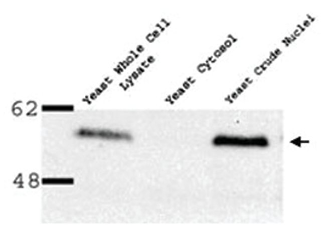 Rabbit polyclonal antibody raised against recombinant NUP53.