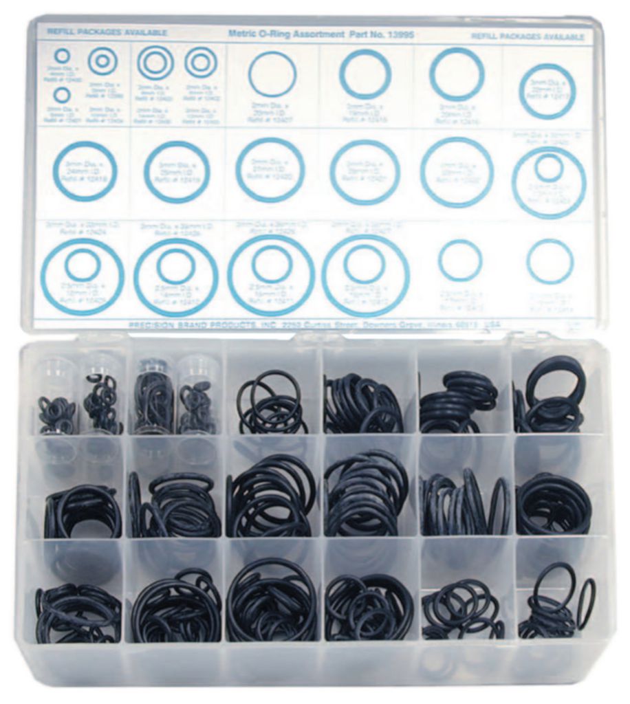 Metric O-Ring Assortments^ Metric O-Ring Assortments, 350 Per Set, Includes (10) 2.5Mm Body, 17Mm; (10) 2.5Mm Body, 19Mm; (10), Material Buna-N, For Fluid And Gas Connectio