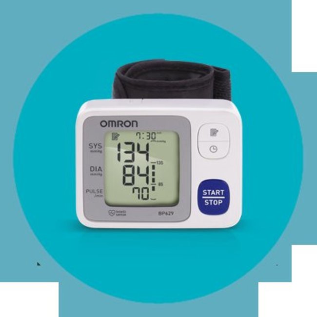 Omron 3 Series Wrist Blood Pressure Monitor (Model BP629) Clinically Proven Accurate. 60 memory storage with date and time stamp allows to review readings with the touch of a button. Tested and validated for accuracy. Hypertension Indicator advises if your reading exceeds internationally recognized guidelines for normal home blood pressure levels while the Irregular Heartbeat Detector alerts you of irregular heartbeats while your blood pressure is being taken Advanced Averaging feature automatically displays the average of up to the last 3 readings taken within the last 10 minutes. Package includes: One 3 Series Wrist blood pressure monitor, Storage case, Quick start guide, Instruction manual, 2 AAA batteries.