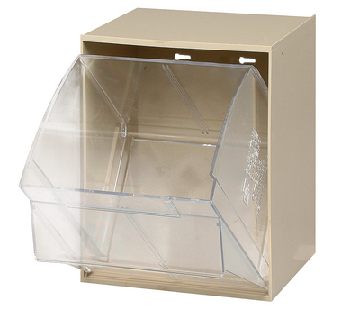 Bin^ Space saving bin unit keeps small and medium sized parts organized, sorted, Clear and break resistant plastic containers tip open to a 45 degree angle and completely removable, Ivory frame, Dimension(LxWxH): Outside: 11 3/4 x 11 13/16 x 13 7/8 Inch, Bin: 8-7/8 x 11-1/16 x 13-5/8 Inch