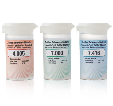 Traceable® pH Standards, Certified Reference Materials, are 100% compatible with all instruments and probes, Accuracy for the Traceable® Buffers at 25°C is ±0.010 pH., 08_Certifications: Certified Reference Materials meet Federal/State/local agencies’ strictest mandates and deliver exact calibration results for any pH meter. Select values are manufactured to IUPAC (International Union of Pure and Applied Chemistry) formulation. All Certified Reference Materials feature resistance to temperature changes and long-term buffer stability. | ISO 17025 (Calibration Laboratory) and ISO Guide 34 (Certified Reference Material Producer) provide highest achievable levels of product production, documentation, and accuracy. Additional accreditations include ISO 31 (content) and ISO 35 (statistical analysis). ISO 9001 ensures that world-class product quality standards are always met. | To assure accuracy an individually serial-numbered Traceable® Certificate is supplied to indicate traceability to standards provided by NIST (National Institute of Standards and Technology) and/or a National Standards Laboratory. Each 100 ml container is supplied with an individual temperature compensation chart, traceability information, and Traceable® Certificate., 10_Ordering: Each 100 mL container is supplied with an individual temperature compensation chart, traceability information, and Traceable® Certificate., Traceable® CRM One-Shot™ pH Standard Buffer, Assortment, Size: 100 mL, Cat. No.: 10154-392, pH: 4.005/7.000/10.012, Traceable® pH Standards, Certified Reference Materials, are 100% compatible with all instruments and probes, Accuracy for the Traceable® Buffers at 25°C is ±0.010 pH., 08_Certifications: Certified Reference Materials meet Federal/State/local agencies’ strictest mandates and deliver exact calibration results for any pH meter. Select values are manufactured to IUPAC (International Union of Pure and Applied Chemistry) formulation. All Certified Reference Materials feature resistance to temperature changes and long-term buffer stability. | ISO 17025 (Calibration Laboratory) and ISO Guide 34 (Certified Reference Material Producer) provide highest achievable levels of product production, documentation, and accuracy. Additional accreditations include ISO 31 (content) and ISO 35 (statistical analysis). ISO 9001 ensures that world-class product quality standards are always met. | To assure accuracy an individually serial-numbered Traceable® Certificate is supplied to indicate traceability to standards provided by NIST (National Institute of Standards and Technology) and/or a National Standards Laboratory. Each 100 ml container is supplied with an individual temperature compensation chart, traceability information, and Traceable® Certificate., 10_Ordering: Each 100 mL container is supplied with an individual temperature compensation chart, traceability information, and Traceable® Certificate.