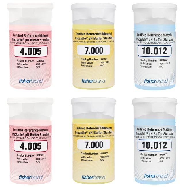 Performs accurate, reproducible pH calibrations with color-coded bottles. Fisher Scientific Traceable, Color-Coded buffers are Certified Reference Material pH Buffers. Compatible with all makes of pH instruments and electrodes.