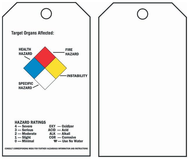 Identify facility equipment to your exact specifications. Brady™ Right-To-Know Accident Prevention Tags are durable one-sided tags with a write-on area that accepts most marking pens.