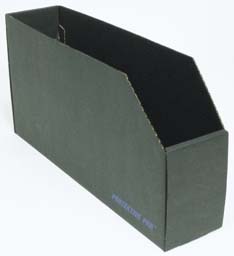 Reel/Dip Tube Bin Box^ Open style for better loading from above. Reusable. Impregnated, corrugated cardboard. Buried shielding layer minimizes sloughing and rub-off contamination. Static-dissipative surface of 1e7-1e9 ohms/sq. 100% recycled material. 100% recyclable. Dimensions: 45.7Lx5.1Wx22.9Dcm.