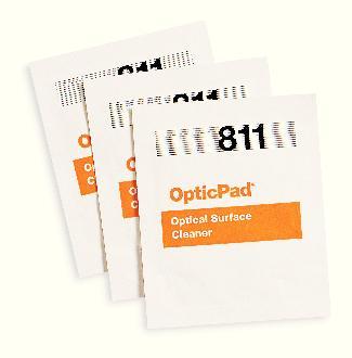 OpticPad* Presaturated Pad^ Non-abrasive, lint-free cellulose pad is presaturated with special solvent for optical grade surfaces. Solvent is filtered to 0.2u and evaporates quickly without leaving a residue. Each 14x20.32cm pad is hermetically sealed and individually wrapped.