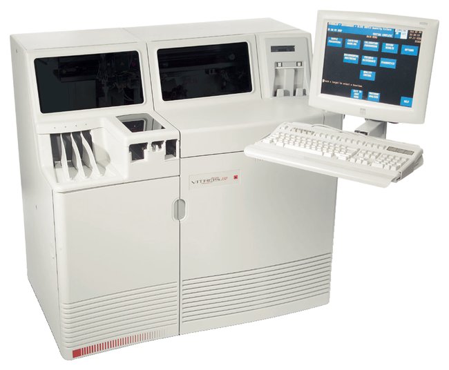 Key FeaturesOn board capacity for all 45 assaysSample types: serum, plasma, urine, CSFSample volume: 5–11μLSample capacity: 40 samples (4 trays of 10 samples)Time for single results: 2.5 to 8 minutesPrimary tube samplingOn board dilutionUnique sample processing capabilities like disposable tips, bubble, and clot detection assure confidence in resultsDoes not require deionized water, plumbing, or drainsTrue random access testingLow-glare flat screen offers easy, touch-sensitive operation with enhanced ergonomicsWide, accessible on board menu delivers immediate results for STAT or routing testing and disease-focused panelsCustomized patient reports for physician office labsKey BenefitsHigh reagent efficiency“Load and Go” reagent preparation, MicroSlide™ technology, and up to six months' calibration stability mean labor can be redeployed for value-added tasksVITROS™ technology reduces interference from hemolysis, lipemia, and bilirubinLow cost per reportable resultMinimal carryover and interferenceMinimal instrument maintenanceMinimal chemical or infectious wastes reduce biohazardsSelf-monitoring alerts operators to prompt action avoiding testing delaysSmall footprint requires less space and overhead expense
