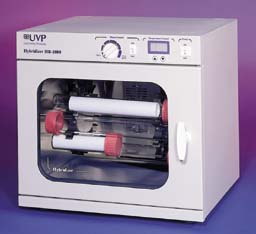 HB-1000 Series Hybridizer^ Microprocessor controlled. Variable bottle positioning. LED display. Uses 20-35x150mm or 10-35x 300mm bottles. Speed: 10-18 RPM. Range: -9.9 to 99.9[degree]C. Chamber Dimensions: 27.3Hx35.6Wx27.3Dcm. Exterior Dimensions: 40.6Hx44.5Wx38.1Dcm. For 115V.