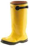 Servus* Strap-On Rubber Overshoes^ Stretches over work footwear. Rubber compound prevents ozone deterioration. 100% waterproof boot features an adjustable side strap for a snug fit. Tough, comfortable net lining for easy on and off. The 46cm high overshoe has a cross-rib outsole. Yellow. Size 12.