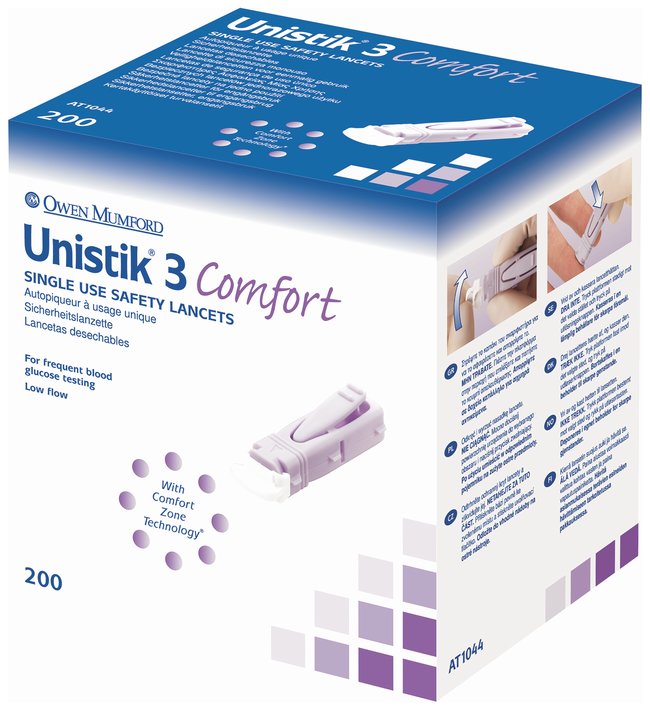 Unistik 3 Safety Lancets, Feature unique Comfort Zone technology that allows ultimate control and comfort when lancing, Pack of 200