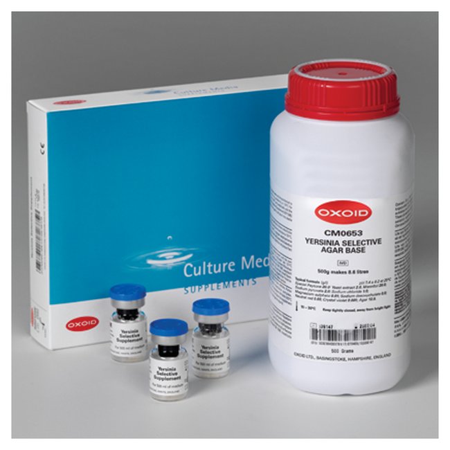 Oxoid Yersinia Selective Supplement is used for the isolation of Yersinia enterocolitica.Add to Yersinia Selective Agar Base, Part No. CM0653BEach vial supplements 500mL of medium