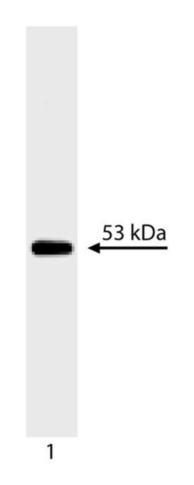 53 is a nuclear phosphoprotein which acts as a tumor suppressor by providing a cell cycle checkpoint for DNA damage during S-phase. Mutations in wildtype p53 can indirectly alter the DNA binding and transcription factor activity of p53. By altering expression of genes normally regulated by p53, these mutations can result in both a loss of tumor suppressor function and a gain of oncogenic function. The majority of mutations in the p53 gene are missense mutations which alter the identity of an amino acid. These mutations may alter the conformation and thus increase the stability of the mutant p53 protein. p53 is expressed in all vertebrate species examined. p53 may be overexpressed in transformed cell lines, where it forms complexes with viral oncogenes including SV40 large T antigen and the adenovirus protein, E1B. p53 migrates at ∽53kDa on SDS-PAGE. PAb 240 reacts with a conformational epitope between amino acids 156 and 214 of native p53. As such, Pab 240 recognizes only certain mutant forms of p53, as determined by immunoprecipitation. It detects both mutant and wildtype p53 in western blot analysis and immunohistochemistry of frozen tissue sections. It is thought that p53 mutations exert a common conformational change which results in expression of the Pab 240-specific epitope on mutant p53 molecules. A recombinant fusion protein of p53 sequence including amino acids 14-289 was used as immunogen.Host Species: MouseClone: PAb 240Isotype: IgG1Species Reactivity: Human, Mouse, Rat, Hamster, Monkey, Bovine, ChickenImmunogen: Human p53 aa. 14-289Formula Weight [Chemical]: 53kDaImmunohistochemistry (Frozen), Immunoprecipitation, Western Blotting