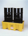 4 Drum Secondary Spill Containment Pallet^ Provides support and spill containment for 208L drums. Consists of translucent tub and open grating with 4.4cm square openings. 130.8Lx130.8Wx47Dcm. Forklift or pallet jack transportable. 321L spill capacity. 1814kg load capacity. Meets EPA requirements.