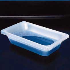 Nalgene Pans, Polypropylene, Thermo Scientific^ Pans are tapered for nesting to save space, rolled edges provide extra stiffness for carrying heavy contents, heavy wall construction will withstand rugged use and repeated autoclaving, autoclavable
