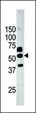 PANK2 ANTIBODY (N-TERM)^ Purified Rabbit Polyclonal Antibody (Pab). This antibody is generated from rabbits immunized with a KLH conjugated synthetic peptide selected from the N-terminal region of human PANK2. Specificity: H. Concentration: 0.25 mg/ml. Size: 0.1 mg.