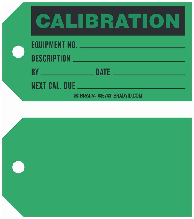 Identify facility equipment to your exact specifications. Brady™ Paper Cardstock Tags CALIBRATION are durable one-sided tags with a write-on area that accepts most marking pens.