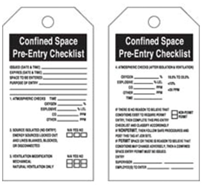 Paper Cardstock Tag: Confined Space Pre-Entry Checklist, Pack of 25