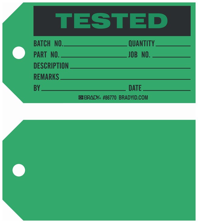Identify facility equipment to your exact specifications. Brady™ Paper Cardstock Tags are durable two-sided tags with a write-on area that accepts most marking pens.