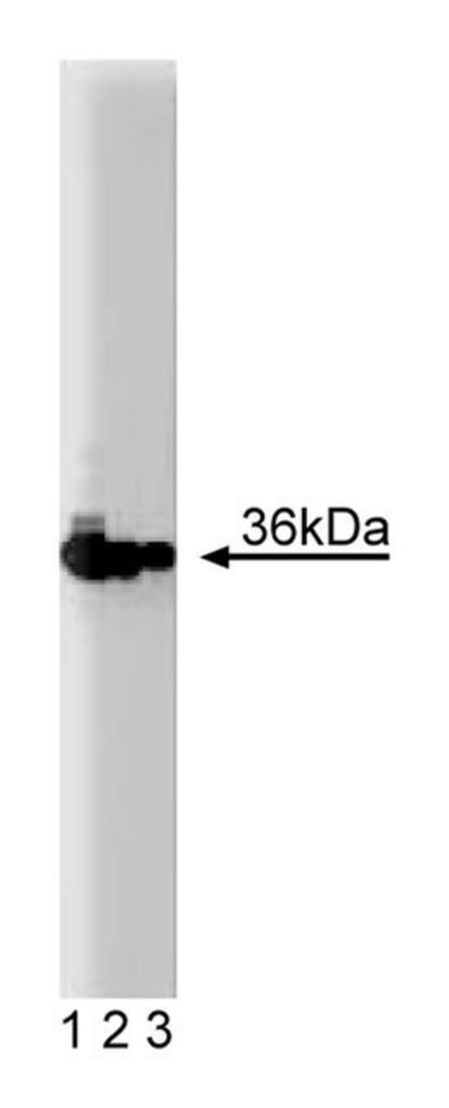 Progression of the mammalian cell cycle is regulated in two different ways: 1) phosphorylation and dephosphorylation of key proteins, 2) synthesis and degradation of regulatory factors. The Proliferating Cell Nuclear Antigen (PCNA) was initially identified as a nuclear antigen in proliferating cells and was subsequently described as a subunit for DNA polymerase δ. Human PCNA is 262 amino acids with an apparent molecular weight of 36kDa. PCNA protein levels peak during the S-phase of the cell cycle, at which time it forms a complex with the p21 inhibitor. PCNA is almost undetectable in other phases of the cycle. Because of its unique expression, PCNA has been extensively used in studies associating the prognosis of tumor progression and neoplastic proliferation.Immunofluorescence, Immunohistochemistry, Immunoprecipitation, Western Blotting