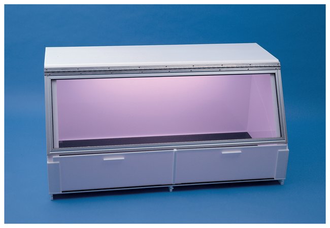 Three sizes offer plenty of workspace for reaction supplies and thermal cycler.UV irradiation of working area prior to use blocks replication of contaminating DNA sequences by causing adjacent pyrimidines to undergo dimerizationProtects against cross- or airborne contamination by limiting exposure of experimental setup to open lab environmentDual UV bulbs deliver twice the UV intensity compared to single bulbs, helping irradiate areas that might otherwise be inaccessible; useful when workstation is used to decontaminate apparatus and reagentsAccess doors close to prevent contamination, then slide into storage compartment in base during useStainless-steel ceiling increases UV dose at workstation surface; results in a 10% increase in UV dose with single bulb and 20% with dual UV bulbHinged-glass fascia allows easy access to interior workspace for cleaning and placement of large instrumentsDual fluorescent lamps ensure excellent workspace visibility254mm UV lamp with convenient switch for timed decontamination of workspaceOrder Info110V.CertificationsCE-marked.