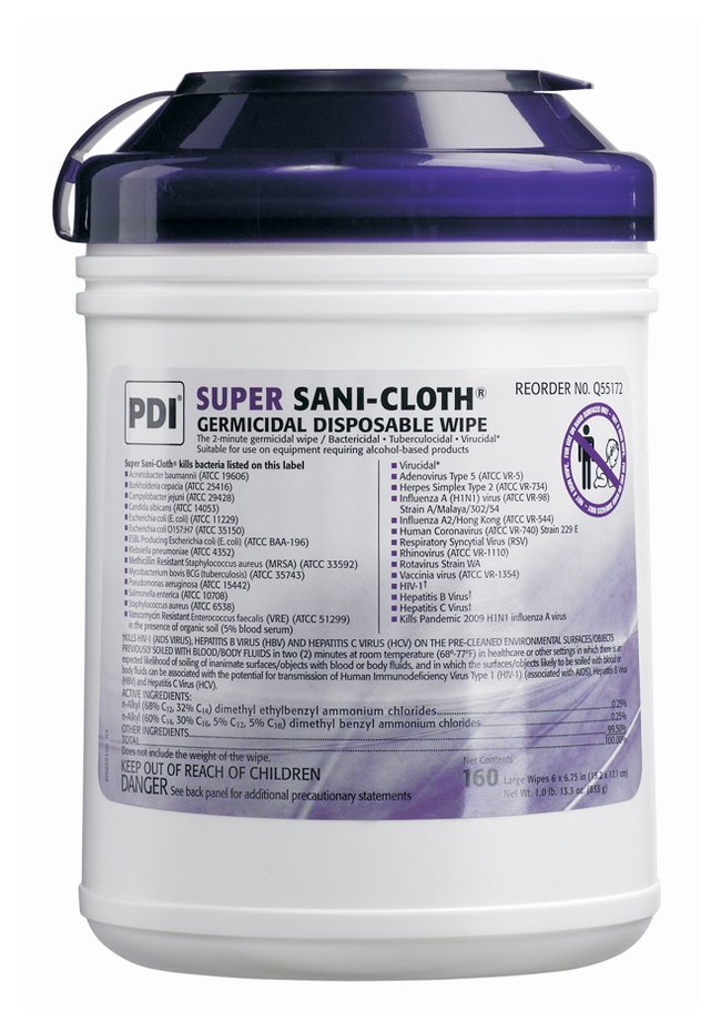 Super Sani-Cloth Germicidal Disposable Wipes, Fast contact time allows for a quick room turnover, Pack of 160