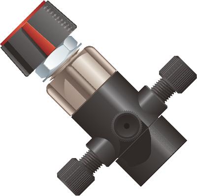 Valve, 4-Port Switching, 4-Way Diagonal Flow^ .04 Thru Hole, 12.4uL swept volume, PEEK* with Tefzel* Flangeless Fittings for 1/16 OD Tubing
