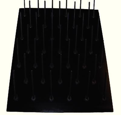Pegboard^ 1 inch black Trespa Toplab pegboard with 46- 6 inch pegs.