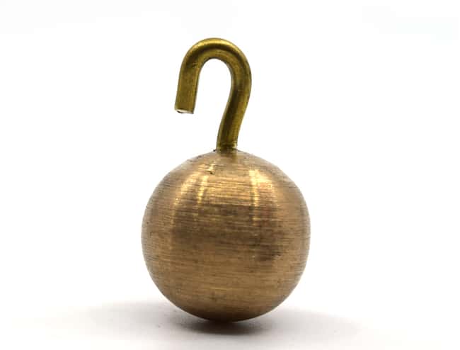 Brass pendulum bob is useful while studying the physics of pendulum motion including tension force, gravity force, centripetal force, potential energy, kinetic energy, and more Single pendulum bob with hook for attachment to pendulum arm Threaded hook is removable Bob Diameter: 0.75 in. (19 mm) Bob Height: 1.25 in. with hook attached Material: Bra
