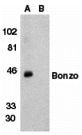 Peptide BONZO 0.05MG^ (NT2) Bonzo peptide Location: 15 amino amino terminus of human Bonzo Species: Human, storage conditions: Store Bonzo peptide at -20degreeC, stable for one yearApplications: Bonzo peptide is used for blocking the activity of Bonzo Antibody
