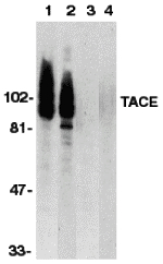 Peptide TACE 0.05MG^ TACE peptide Location: 17 amino acids near the carboxy terminus of human TACE Species: Human, storage conditions: Store TACE peptide at -20degreeC, stable for one yearApplications: TACE peptide is used for blocking the activity of TACE Antibody