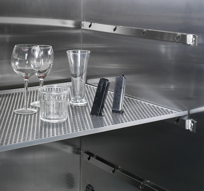 Shelves^ Two perforated shelves. Each shelf fits into sidewall brackets of CApture BT Fuming Chamber. CApture BT holds up to 3 perforated shelves. Includes 2 stainless steel shelves, 26in w x 23in d