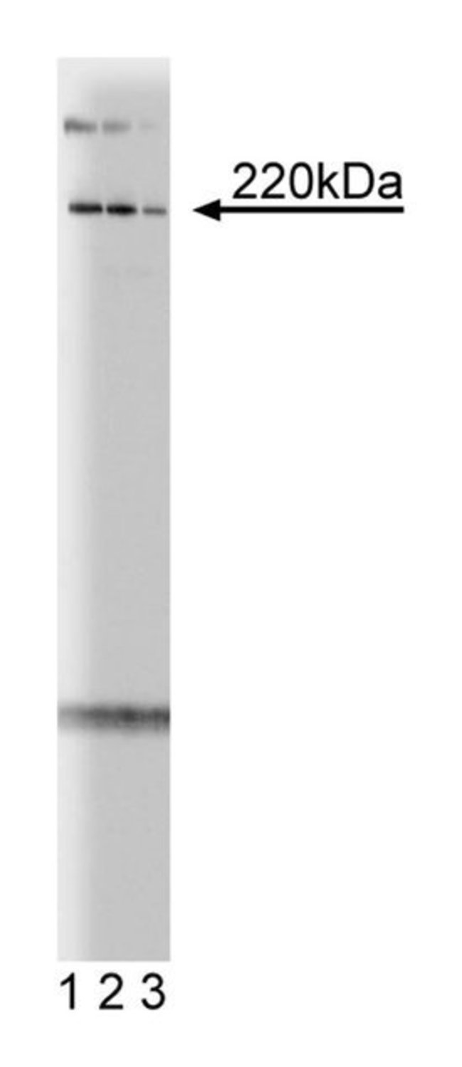 Centrosomes and other microtubule-organizing centers are a diverse group of organelles that nucleate and organize microtubules for many celllular processes, such as mitotic spindle formation, organelle tranpsort, and protein localization. Pericentrin is a protein in the pericentriolar material, a filamentous matrix surrounding centrioles, which can organize microtubule spindle formation. The structure of pericentrin includes multiple α-helical domains that form coiled-coil domains separated by non-helical, non-coiled regions. It is found in a 3MDa-complex that includes γ-tubulin, a form of tubulin that nucleates microtubule formation at the centrosome. Pericentrin exhibits the highest expression in embryonic mouse kidney, thymus, and liver. Injection of pericentrin antibodies in Xenopus oocytes disrupts mitotic and meiotic divisions and blocks microtubule aster formation. In addition, dynein transports both pericentrin and γ-tubulin to centrosomes along microtubules in Xenopus oocyte extracts. Thus, the complex of pericentrin and γ-tubulin may be recruited to the centrosome by dynein, where the complex becomes anchored to the centrosome for microtubule nucleating activity.Host Species: MouseClone: 30Isotype: IgG1Species Reactivity [for Features Main]: HumanImmunogen: Mouse pericentrin aa. 1692-1814Immunofluorescence, Western Blotting