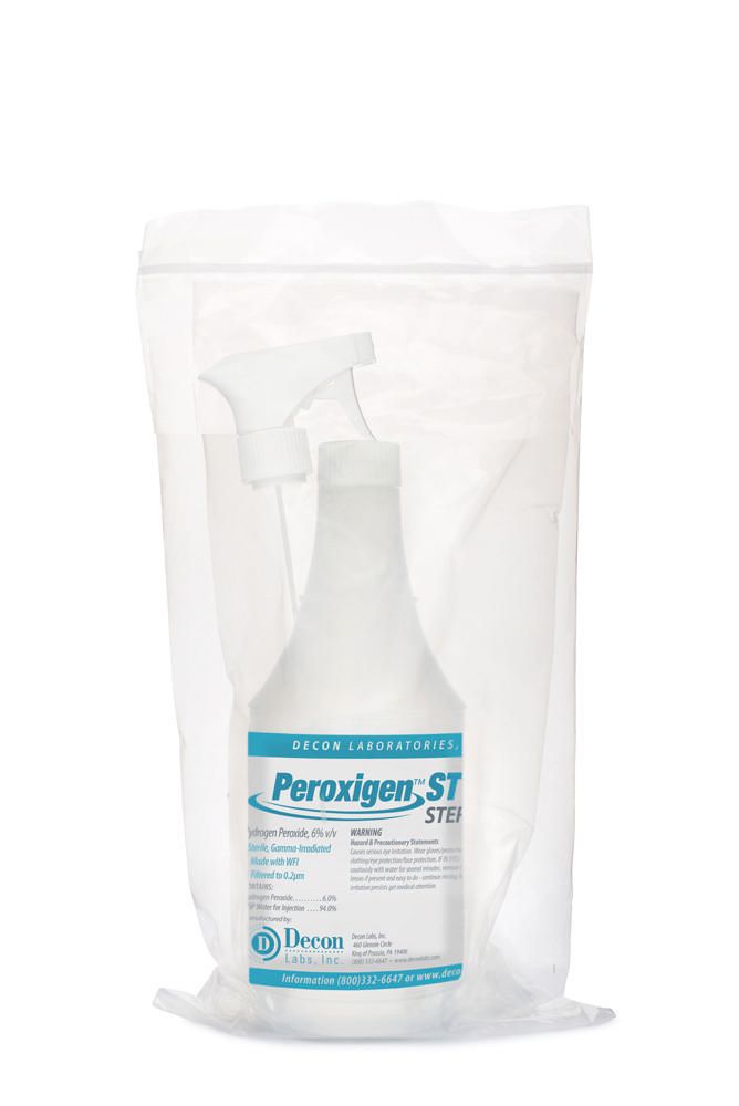 Peroxigen ST 16oz^ Peroxigen ST, Ready-to-use 6% Hydrogen Peroxide solution, Made with Water-for-injection, Sterile, Double-bagged, Gamma-irradiated tested for sterility, Low-toxicity, Non-flammable, For cleaning hard, non-porous surfaces in labs, production areas, Trigger Spray bottles, Size: 16oz