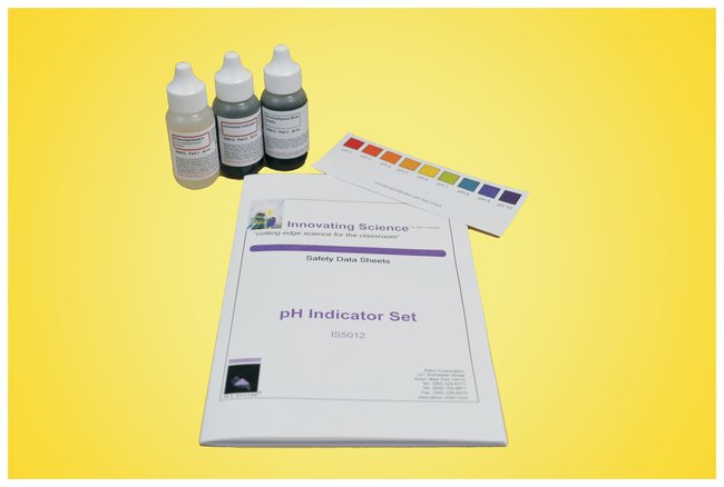 Kit Includes:30 mL Phenolphthalein, 1% Solution30 mL Universal Indicator30 mL Bromothymol Blue, 0.04%