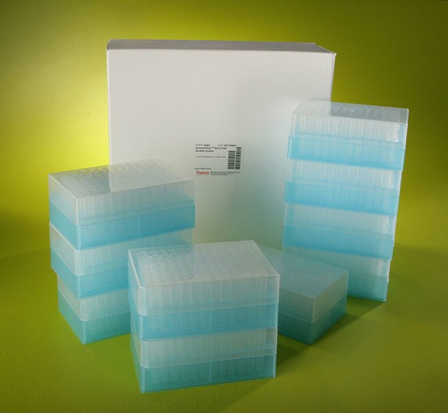 Pre-racked 1.1mL-tall microtubes boxed to match a standard 96-well microplate footprint for multichannel pipetting or automated workstations.