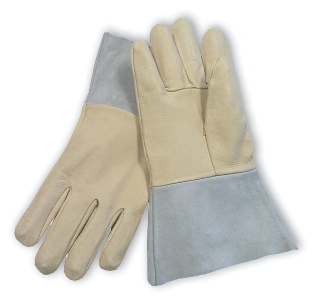 Top Grain Pigskin leather is smooth and breathable due its porous textureLeather becomes softer with use and withstands moisture without stiffeningStitched with Aramid Fiber for additional strength and burn resistanceSplit leather gauntlet cuff provides additional forearm protection and allows for easy on/offStraight thumb increases comfort in closed-fisted workUnlined palm for dexterity