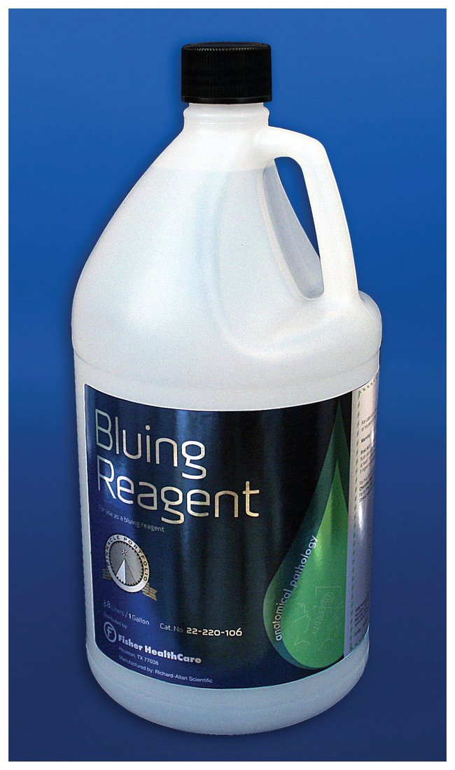 Designed as a systemEach component has added value and benefits that reduces cost per slideUnique chemical formulae of the Pinnacle Portfolio promote long-term chemical stability, which extends the usable life of each componentSubjected to some of the highest quality manufacturing standards in the industryPackaging improvements enhance product longevityBluing Reagent Features:Buffered to ensure the proper alkalinity (pH = 8.0)Requires only a one-minute rinse in water versus conventional bluing agents which require up to five minutes of rinsingDoes not allow for tissue sections to be washed off the slide during the remainder of the staining processPremixed and ready-to-useThis product(s) resides on a Fisher Scientific GSA or VA contract. If you are viewing this page as a nonregistered user, the price(s) displayed is List Price. To view your GSA or VA contract pricing, log in using your account number, or become a registered user by contacting one of our Customer Service teams. You can also view your contract price by searching for this item(s) on GSA Advantage. To place an order, contact Fisher Scientific Customer Service.