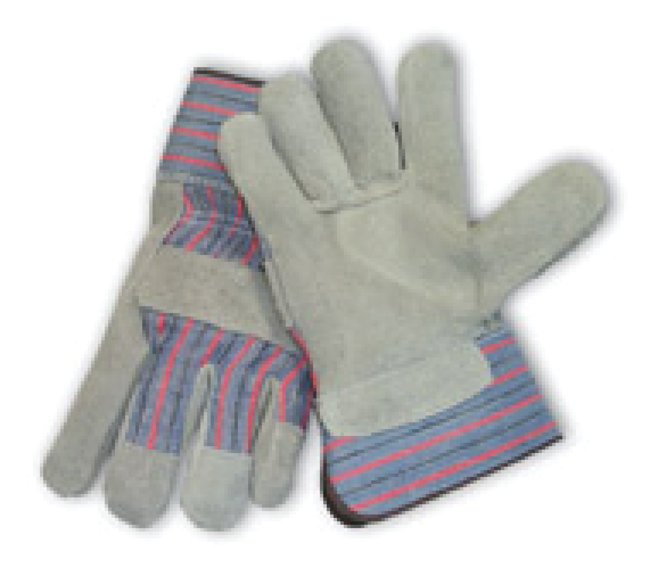 Economy Grade Split Cowhide Leather Double Palm Gloves, Dozen of 12
