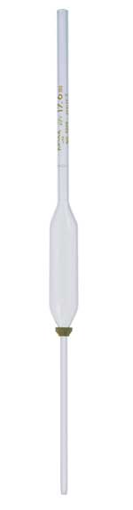 Babcock pipet calibrated to contain 17.6 mL of water (equivalent to an 18 gram milk sample); for use in AOAC/APHA test procedures where blow-out after drainage is specified. Grooves on the outer surface of the washer allow the air displaced by the incoming milk to escape freely, Specially designed rubber washer is supplied with each pipet and is used to support the pipet in the neck of the test bottle, Scale is permanent brown stain, Marked “Sealed 3” for use in states requiring this special marking