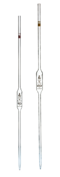 Borosilicate glass, bulb form, with one mark. Accuracy as per Class B. As per DIN ISO 648 standard. Blue Graduation Capacity 1 ml, Tolerance ±0.015 ml. BURETTE HOLDER NOT INCLUDEDEisco Labs Borosilicate glass has the following heat tolerances: Strain Point -515°C | Annealing Point 565°C | Softening Point 820°C.