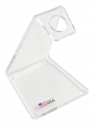 Pipette Filler Holder is made from clear acrylic. The pipette filler holder fits most pipette fillers. Holder dimensions are 9”H x 6”D x 5 1/2”W. The hole is 1.25”.