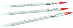 Crystal grade polystyrene is used for consistency in manufacture and maximum clarity, with easy to read crisp black printed graduations enabling the pipettes to be used accurately to /-1%. Sterility is guaranteed by gamma radiation at a license holding irradiation plant, which follows the relevant recommendations in the DHSS Guide to Good Manufacturing Practice for Sterile Medical Devices and Surgical Products. Sterilin pipettes are tested for pyrogencity, and have a pyrogen level of less than 0.25 EU/ml.