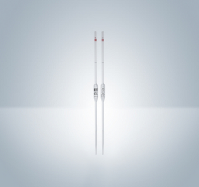 Hirschmann volumetric pipette^ 10 mL, class A, TD, according to ASTM E969 specifications, tolerance /- 0.02 mL, borosilicate glass, color-coded for easy selection according to ASTM E1273, with permanent amber stain lettering and graduation line, pack of 6