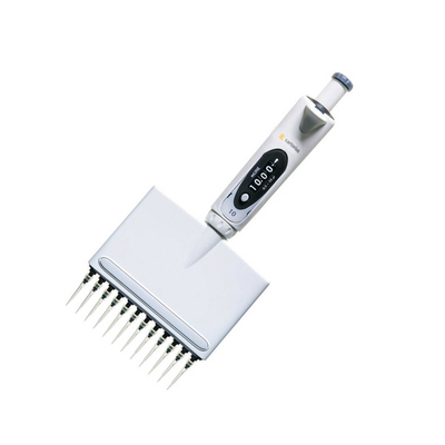 mLINE* 12-Channel Pipettor^ Volume range: 100uL. Features thermal insulation of internal components for accuracy, easy-to-read display, safe-cone filter to prevent contamination and prolong pipettor life, and locking mechanism of counter preventing accidental volume changes.