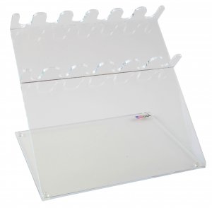 Pipettor holders are made from clear acrylic or high density polyethylene. This pipettor holder accommodates most major brands of pipettors making it a useful addition to any laboratory. The pipettor holder comes in three standard sizes for 3, 4 or 6 pipettors.