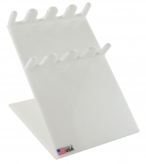 Pipettor holders are made from clear acrylic or high density polyethylene. This pipettor holder accommodates most major brands of pipettors making it a useful addition to any laboratory. The pipettor holder comes in three standard sizes for 3, 4 or 6 pipettors.