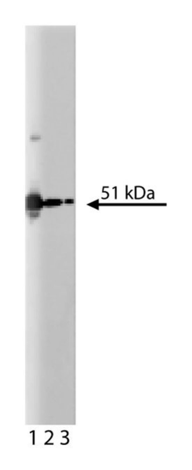 cAMP-dependent Protein Kinase (PKA) is composed of two distinct subunits: catalytic(C) and regulatory (R). Four regulatory subunits have been identified: RIα, RIβ, RIIα, and RIIβ.These subunits define type I and II cAMP-dependent protein kinases. Following binding of cAMP, the regulatory subunits dissociate from the catalytic subunits, rendering the enzyme active. Type I and type II holoenzymes have three potential C subunits (Cα, Cβ, or Cγ). Type II PKA can be distinguished by autophosphorylation of the R-subunits, while type I PKA binds Mg/ATP with high affinity. Most cells express both type I and type II PKAs. Although the Rα isoforms are ubiquitously expressed, the Rβ isoforms are predominant in nervous and adipose tissues. Expression of the RIα subunit is modulated during muscle and adipocyte differentiation in vitro.Immunofluorescence, Immunoprecipitation, Western Blotting